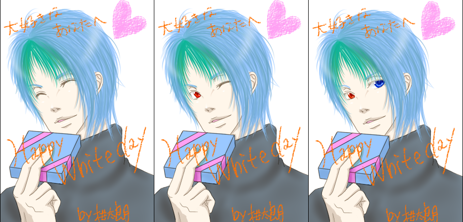 ValentineDay行事に間に合わなかったのでリベンジ(←?)でWhiteDay企画絵を描いているんですが1枚目の3種類が出来たので晒してみる・・・